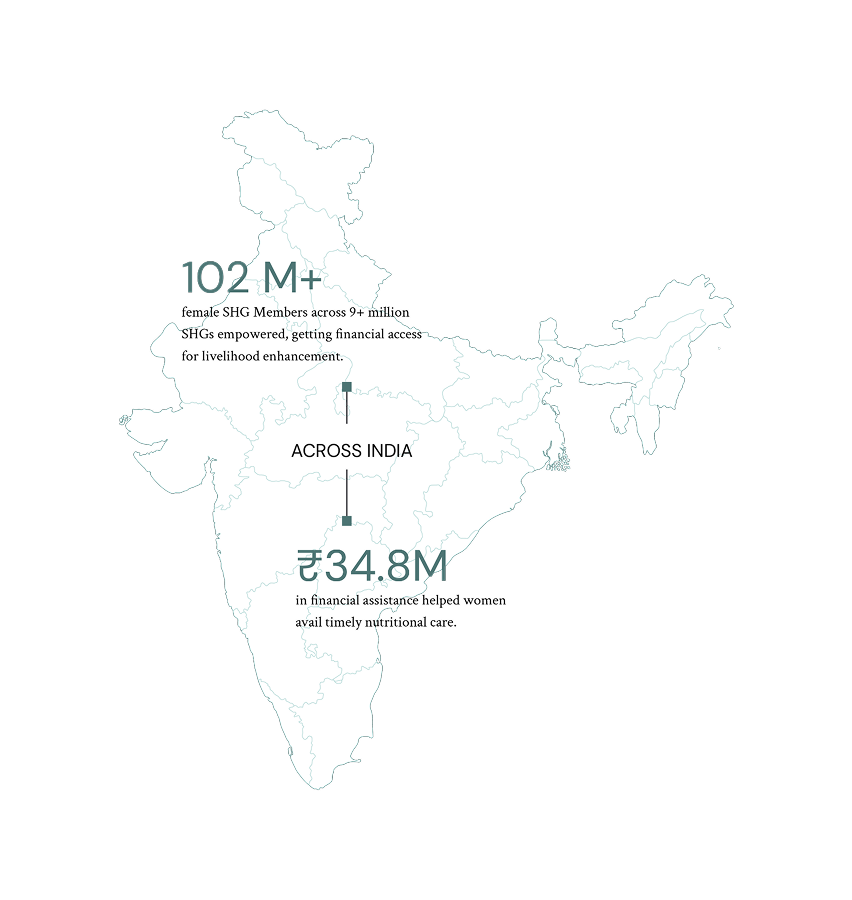 female SHG Members across 9+ million SHGs empowered, getting financial access for livelihood enhancement.